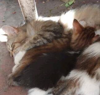 Doux et timide, ce chat adore les câlins. Il observe avant de jouer avec ses 3 sœurs et son frère, il apprécie de téter à califourchon sur sa sœur noire et blanche.